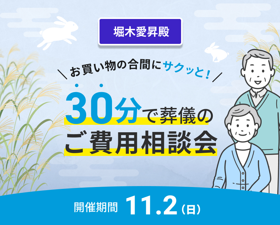 堀木愛昇殿では「30分で葬儀のご費用相談会」を開催中!お買い物やお出かけの合間に、気軽にご……